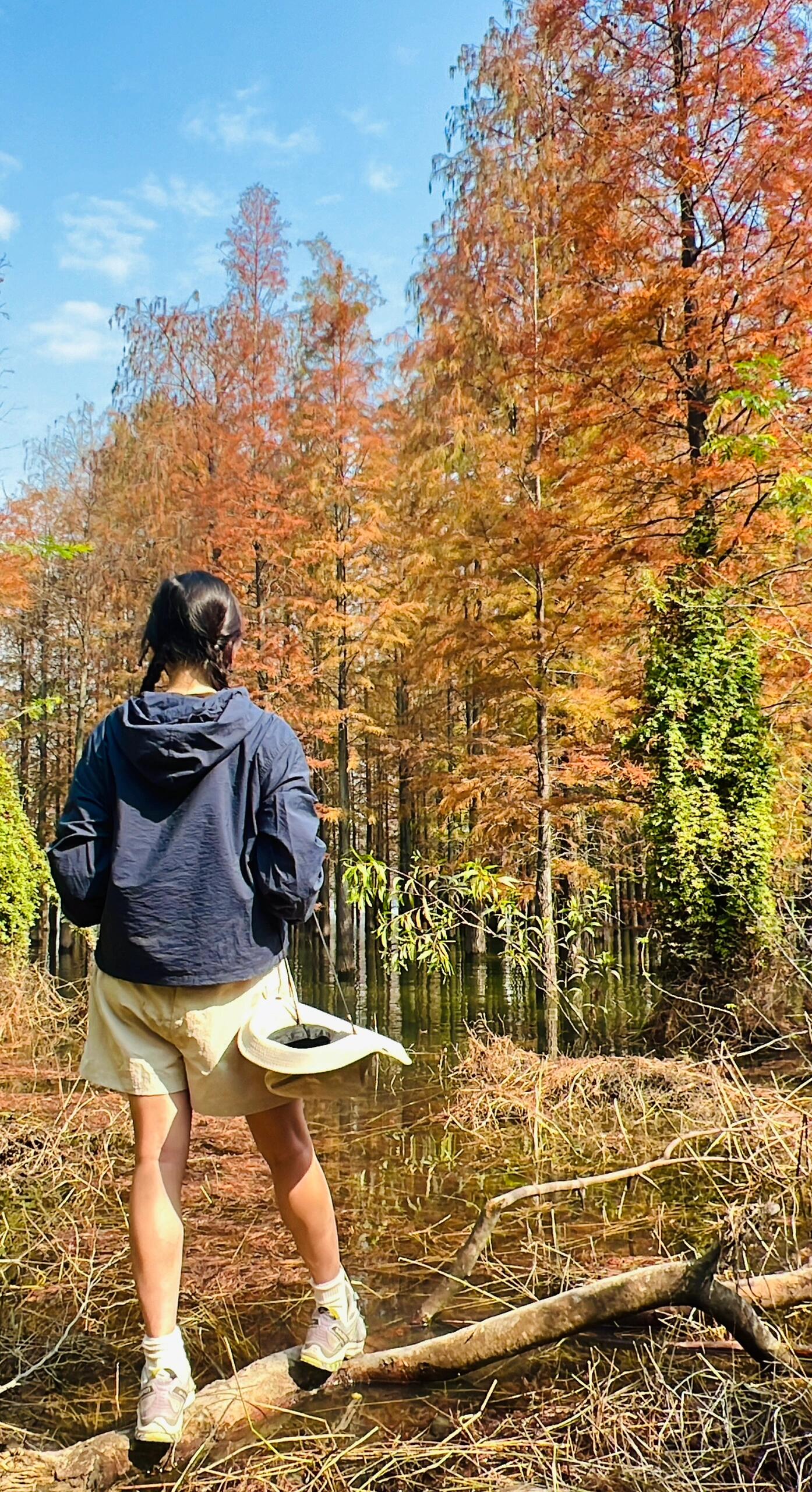 13: 00到达水杉林,拍照,打卡。