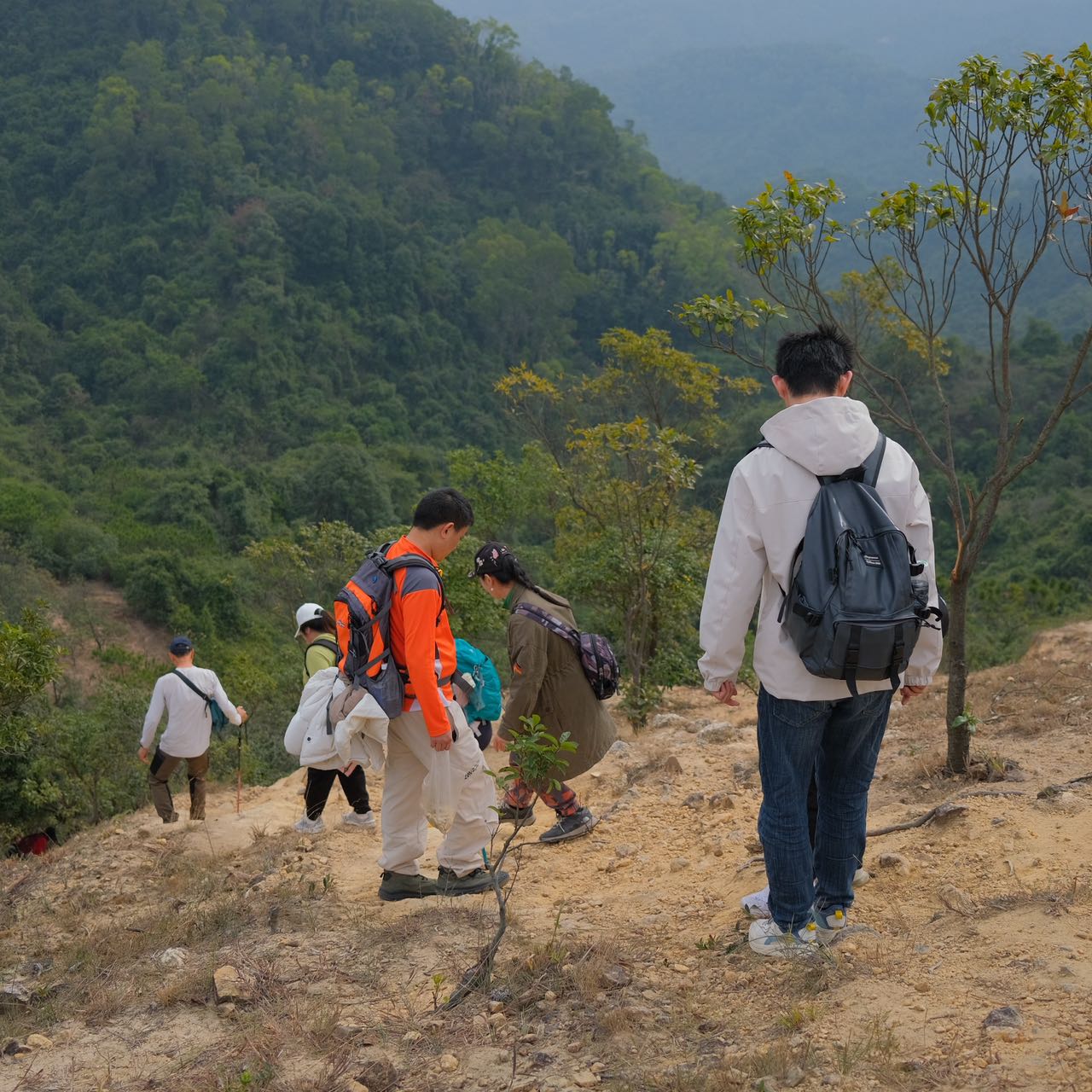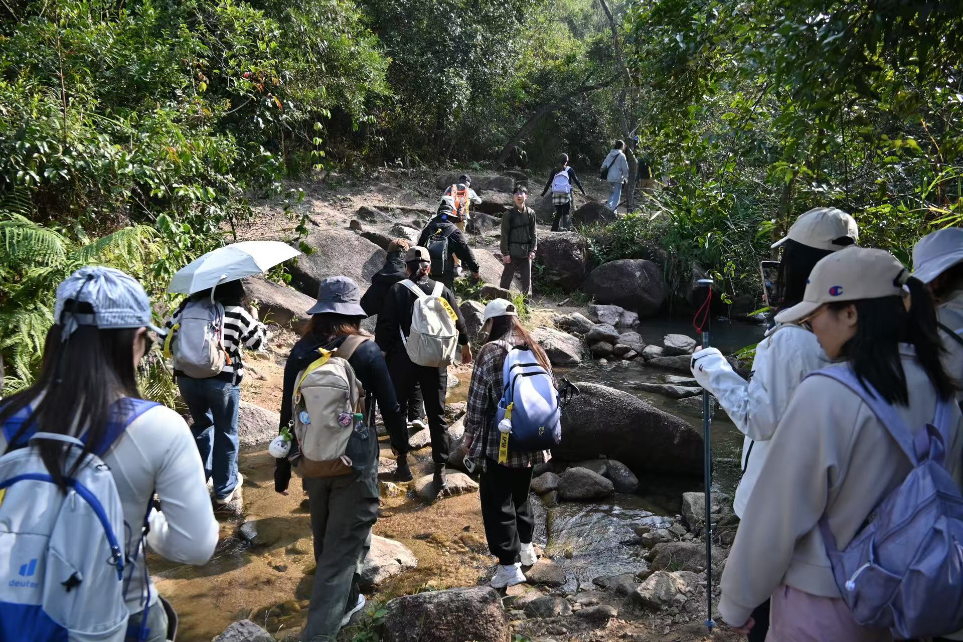 必带:防滑运动鞋、(要磨合过)速干衣裤、双肩背包(徒步禁止手提袋)午餐干粮,水至少1.5L+备用功能饮料,+雨伞/雨衣(有备无患)