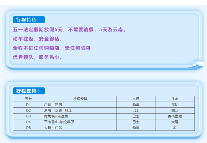 4、因云南气侯的原因,有些酒店无空调,有些有空调也可能不开空调,请游客多多包容和理解。