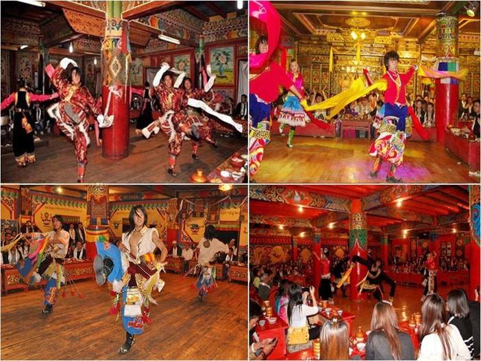 晚上可以自费参加香格里拉扎雅土司庄园宴家访,到达土司庄园,主人家会身着藏族服饰,脚穿长靴,亲自在门口隆重欢迎游客,给每一位远方来的客人献上洁白的哈达,感受到强烈的少数民族风情,整个庄园主要由藏式主楼、藏文化陈列室、经堂和藏式客房组成,各种雕花镂空巧夺天工,图案壁画鲜艳夺目,有藏式宫殿的感觉,显现出王者的气度与风范,进入庄园仿佛进入到了另一个神秘的时空。