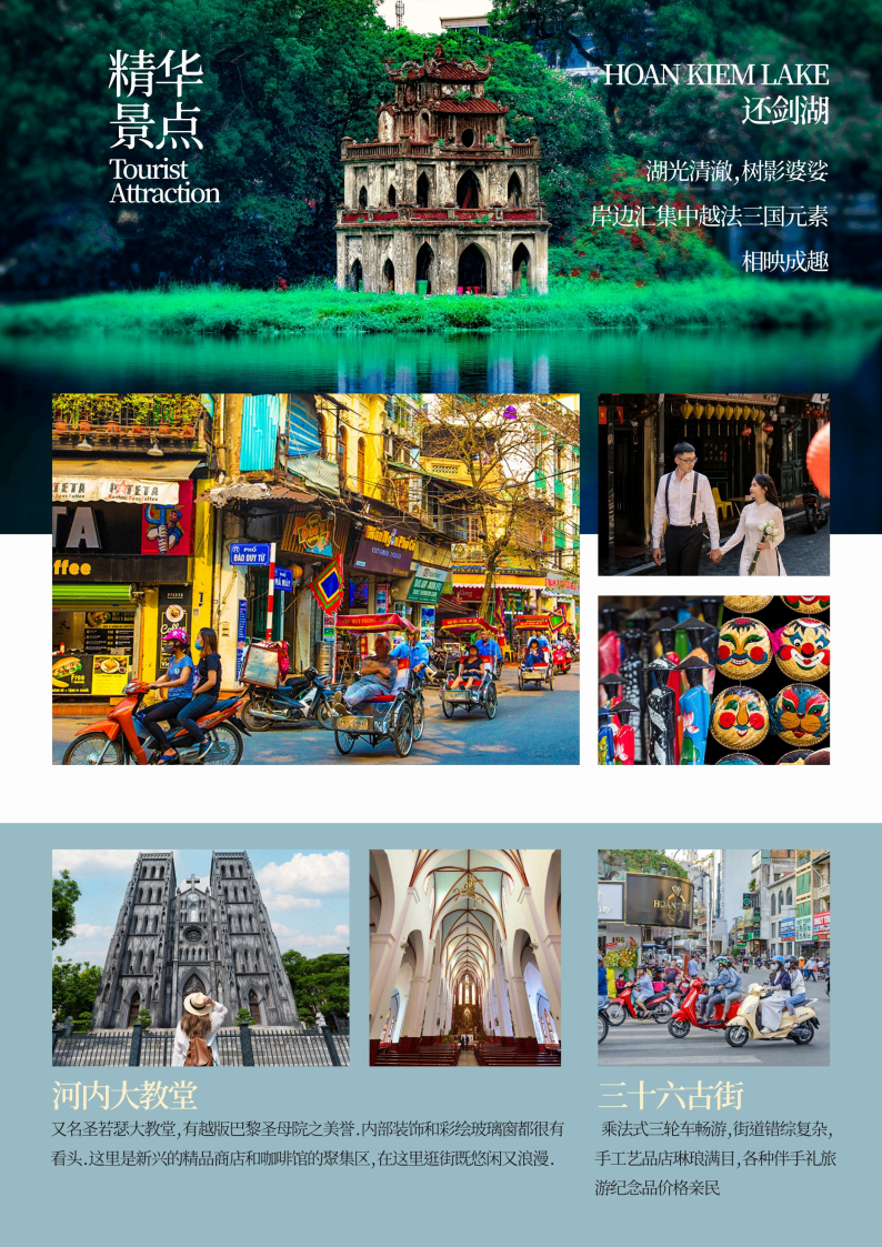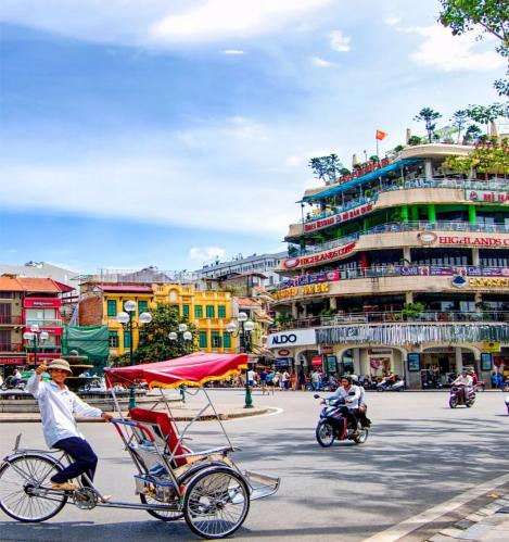 前往【还剑湖】,自由漫步还剑湖,还剑湖位于河内旧城的中心区,被称为河内第一风景区,这里汇聚着中越法三国的文化气息,中国的汉字,越南的奥黛,法式的咖啡馆和面包,相映成趣,近距离接触越南街区文化,更贴越南地气;走在街上,林荫大道两旁有着许多带有百叶窗和瓦顶的砖质建筑,仿佛向世人讲述着这个城市的历史。特别安排乘坐河内特色人力【三轮车】(0.5小时);观赏沿途的风景。乘坐着这种人力三轮车慢悠悠地游览河内古街是您认识河内的最佳方式。