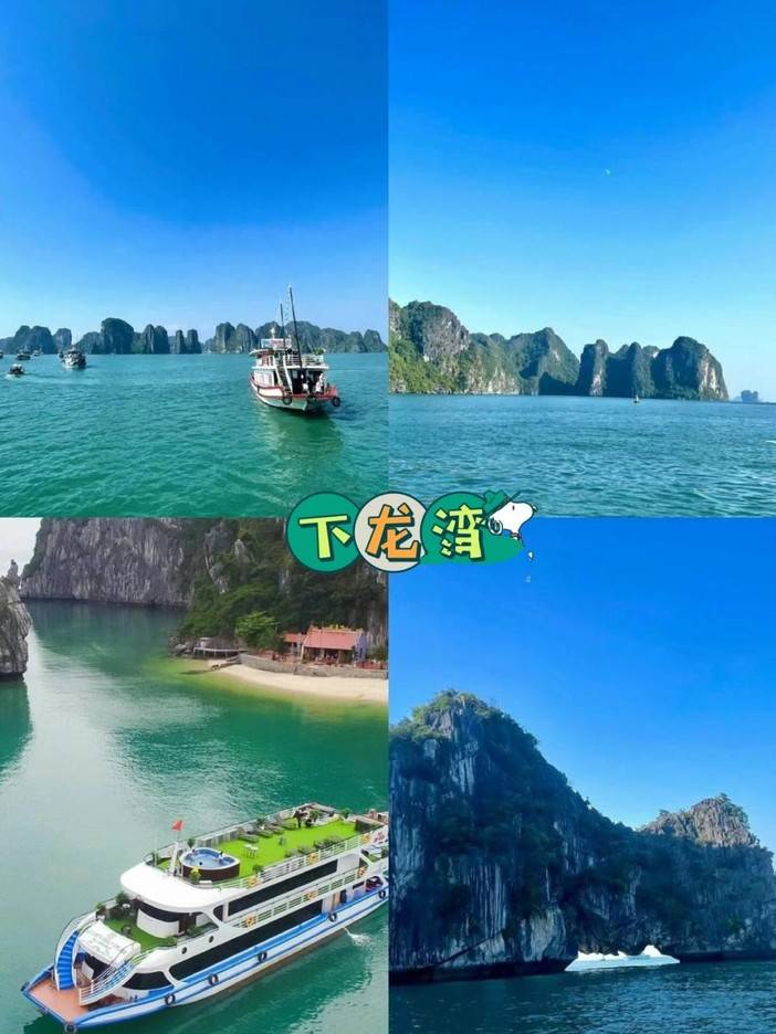 ★下龙湾--世界自然遗产、世界自然七大奇观之一,伸出海面的锯齿状石灰岩柱,洞穴和洞窟,共同形成一幅奇特壮观的如画景致