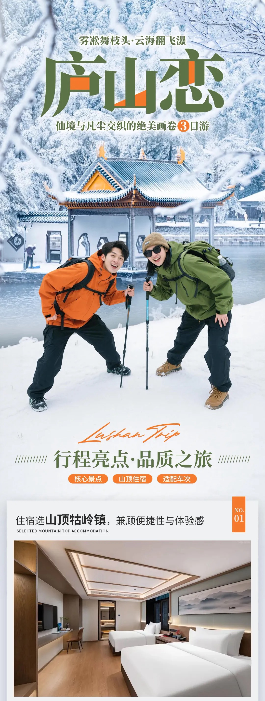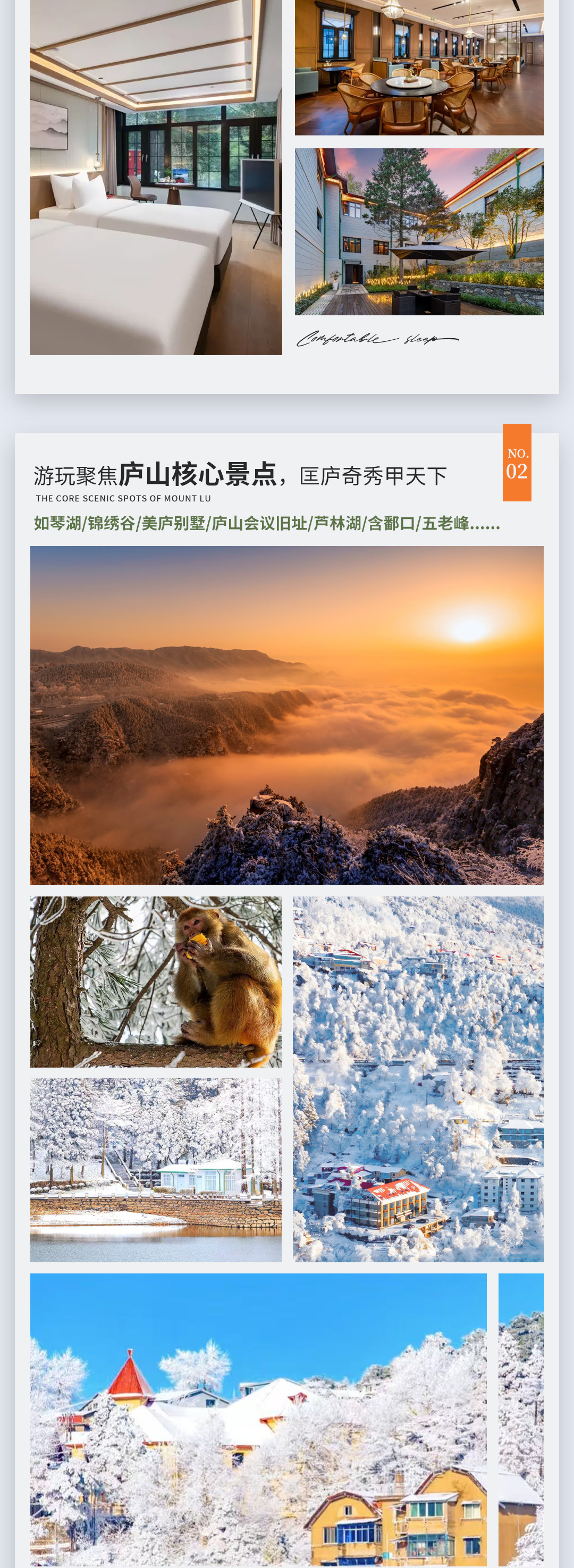 13:30 - 15:00:参观美庐别墅,这里曾是蒋宋故居,建筑融合中西风格;随后去庐山会议旧址,了解近代历史。