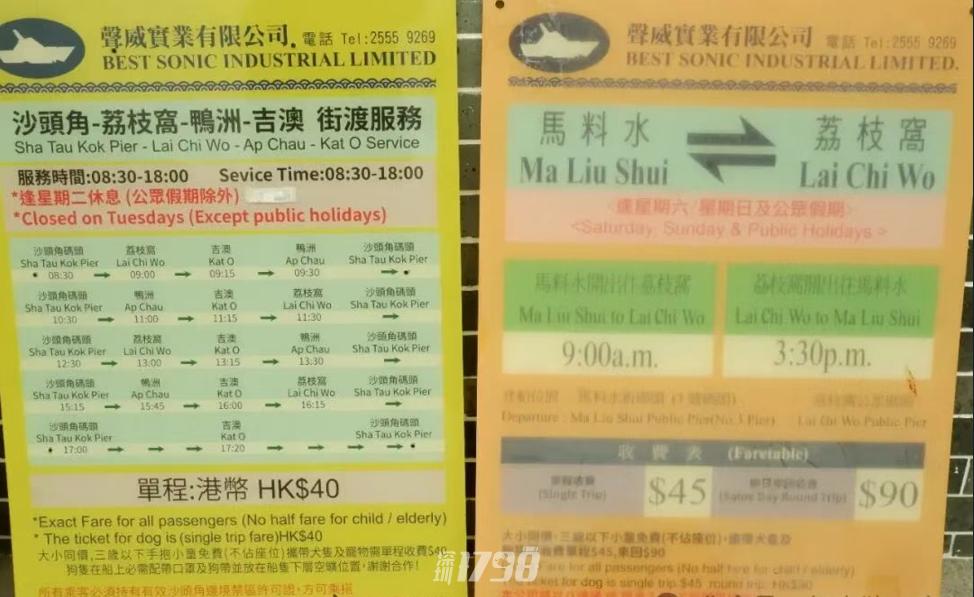 船票只收现金或八达通,45一个人,大小同价