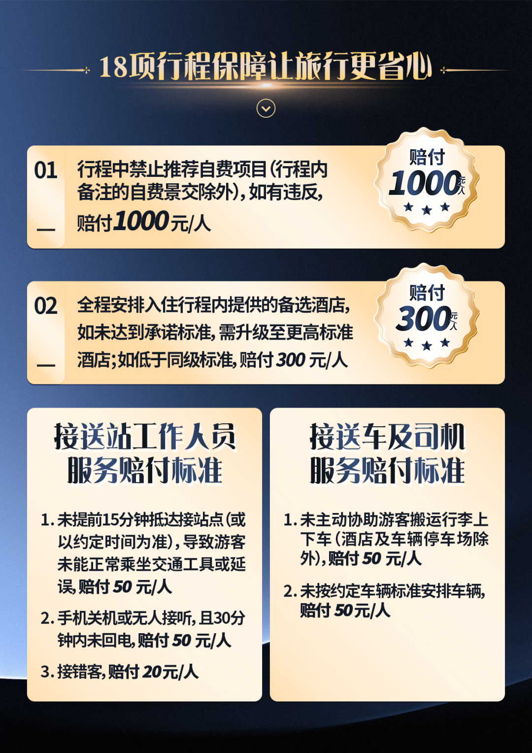 1. 旅行社对旅游产品自主定价行为,会因出发地、报名时间、各家旅行社促销力度、机票折扣活动等诸多不同相关因素而报名价格不同。敬请各位游客在参团游览时不比较、不计较,保持合理的心理预期,若因参团价格差异产生的投诉,视为无效投诉,恕不处理。