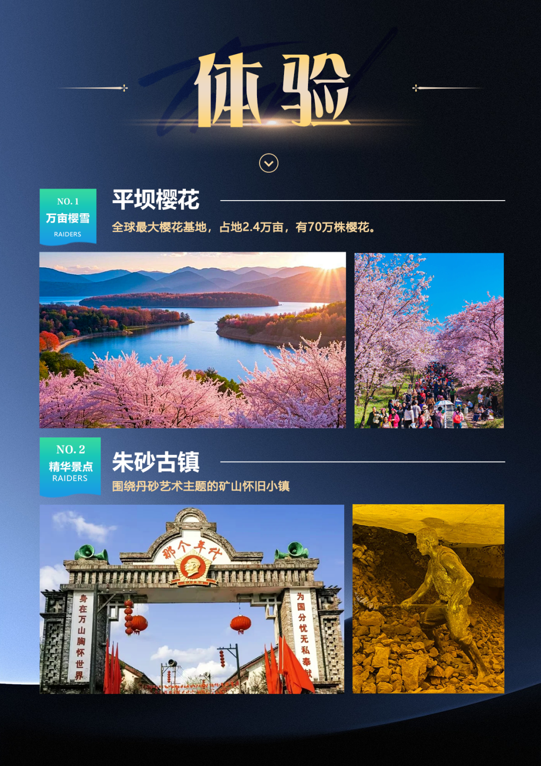 ◎ 朱砂古镇——围绕丹砂艺术主题,打造一座及怀旧建筑,工业博物馆、悬崖栈道、地下长城、星级酒店等于一体的矿山怀旧小镇