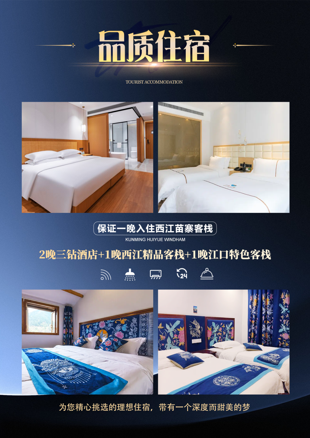 1. 酒店:2晚当地轻奢酒店+1晚江口特色客栈+1晚西江精品客栈