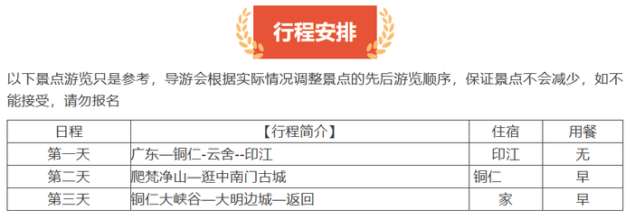 (活动介绍、行程安排、费用说明、注意事项)