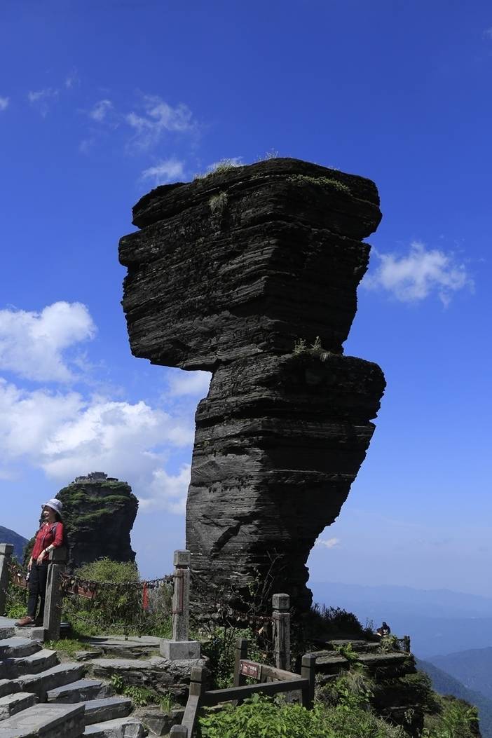 蘑菇石:梵净山的标志性景点之一,高达10米,形如蘑菇,大自然的鬼斧神工,看似摇摇欲坠,实则傲然挺立14亿年。