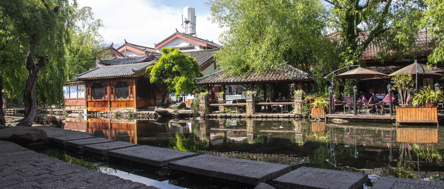 丽江古城又名大研镇,是世界文化遗产,也茶马古道上的重要城镇。这里已经有八百多年的历史,城中都是木制古建筑,青石板路,小桥流水,站在城中就可以遥望玉龙雪山。