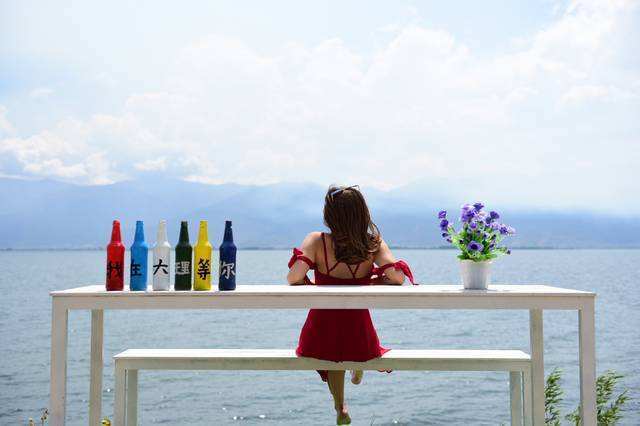 个人的自由活动时间内,游客可以环洱海骑游,或坐在太阳伞下看日落。