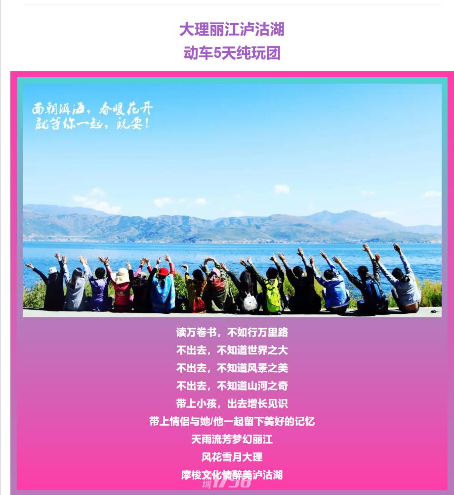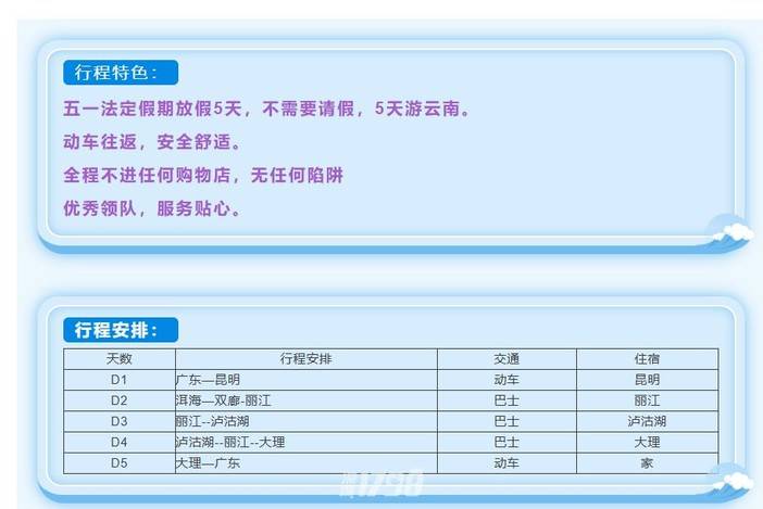 6、 行程中所写景点门票(泸沽湖门票,泸沽湖划船、南诏风情岛)大理古城及丽江古城不用门票50万旅游意外保险,每天送水