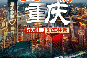 指定时间前往高铁站乘高铁(全程约6-7个小时)前往美丽的山水之城、富有活力的中国西部魅力之都【重庆】。