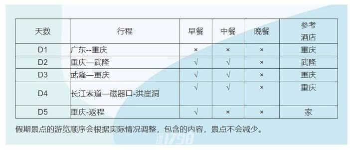 2、重庆地区饮食以麻辣为特色,餐食会偏辣请注意合理饮食切禁暴饮暴食;