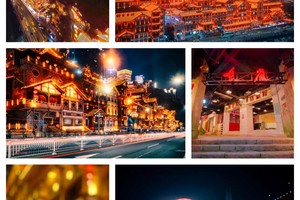 后前往 【洪崖洞商业街】是逛山城老街、观赏两江风光、品尝当地美食的好去处。商业街位于渝中区沧白路,长江、嘉陵江两江交汇的滨江地带,以具有巴渝传统建筑特色的“吊脚楼”为主体,依山就势,沿江而建。夜景美爆了洪崖洞由纸盐河酒吧街、天成巷巴渝风情街、盛宴美食街及异域风情城市阳台四部分组成,以最具巴渝传统建筑特色的吊脚楼为主体,依山就势,通过分层筑台、吊脚、错叠、临崖等山地建筑手法,把这一片建筑汇聚在一起,夜晚时候灯火通明,堪称山城一景。