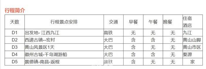 5、门票:黄山大门票+观光车,宏村门票、西递门票,千岛湖船票、徽州古城、屯溪老街