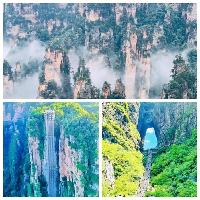 ④世界第一户外电梯,66秒直达山顶的百龙天梯,绝美峰墙,天然长城。