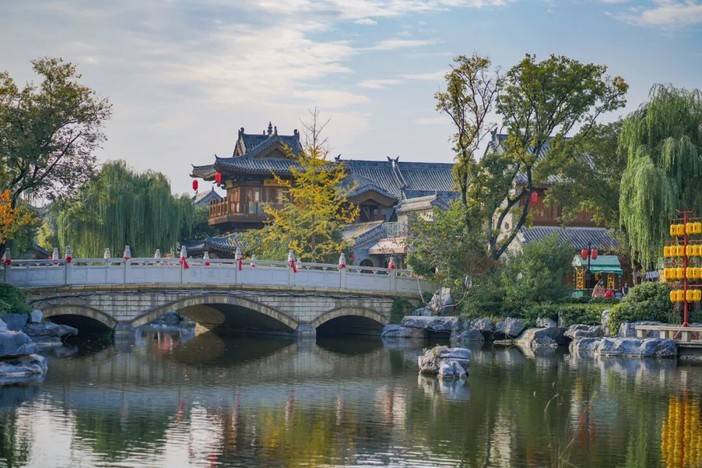之后游览【小宋城】游览时间为1.5小时,整个营业区内以木质仿古建筑为主,回廊流水,亭台楼榭及戏台上传来的传统戏曲演唱声,仿佛瞬间把人带回了拙朴又轻缓的北宋时代。