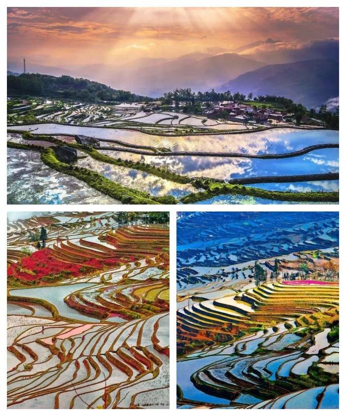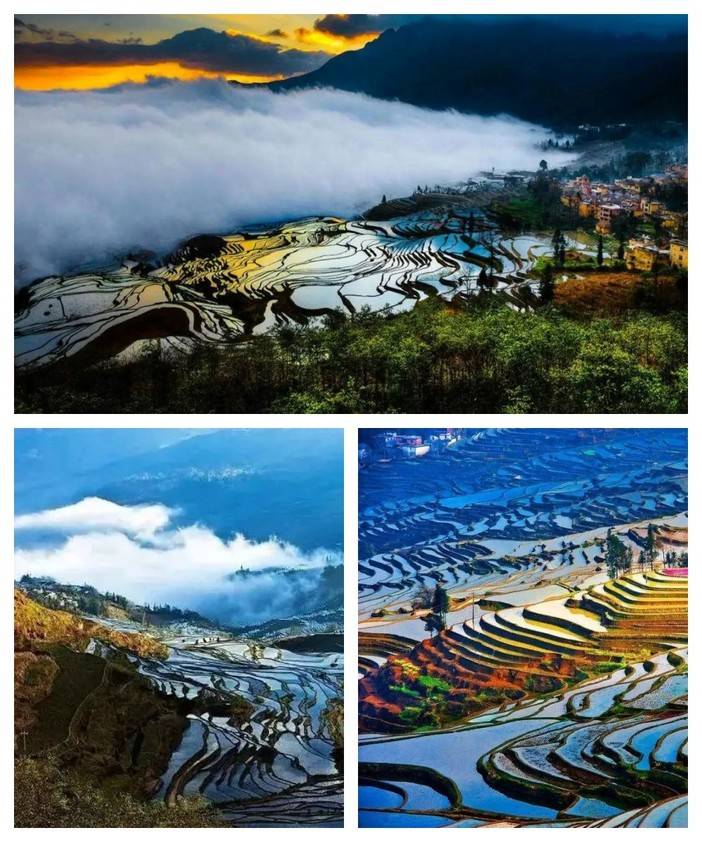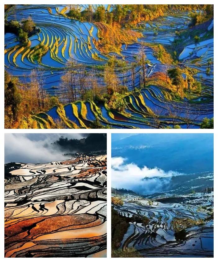 2.红河哈尼梯田--元阳梯田:联合国教科文组织世界遗产名录,几万亩的梯田,在茫茫森林的掩映中,在漫漫云海的覆盖下,构成了神奇壮丽的景观。