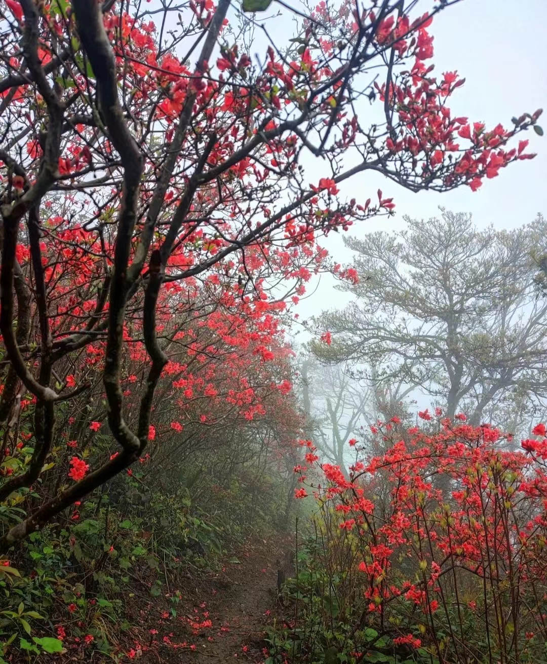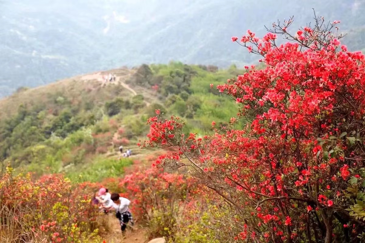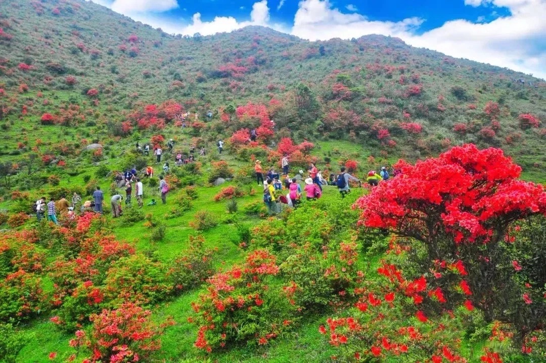 13:00登顶,赏漫山遍野杜鹃花,这里每到3月底-4月初,聚集了大量珠三角驴友前往,喜欢摄影的朋友一定不要错过