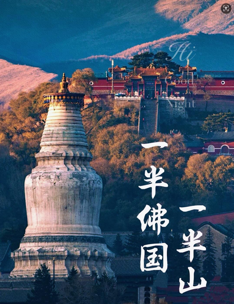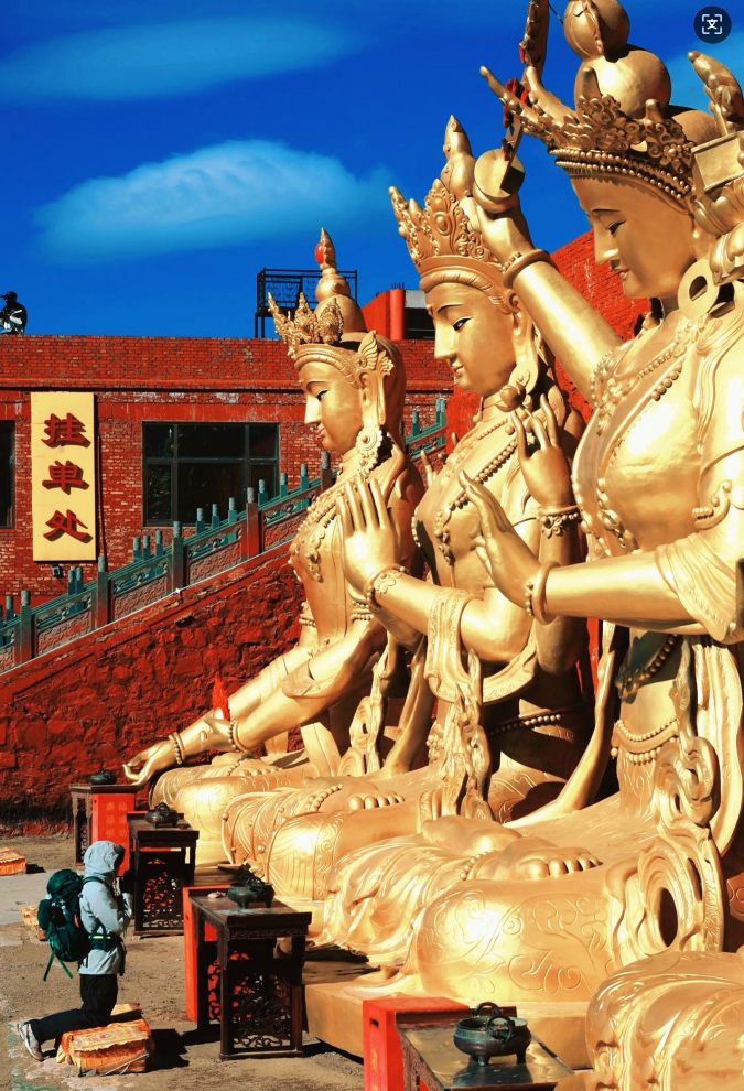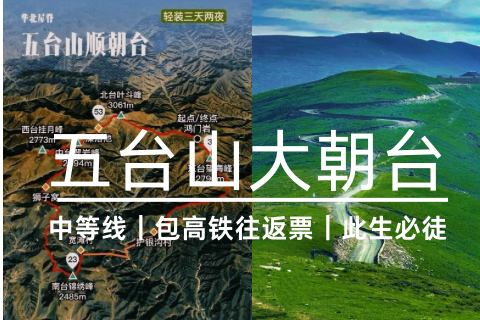 五台山位于山西省忻州市(主区在五台县),属太行山北端;因东台望海峰、西台挂月峰、南台锦绣峰、北台叶斗峰、中台翠岩峰五座顶平如台的山峰得名 是国内此生必徒经典徒步路线之一
