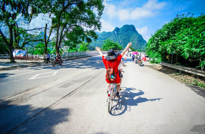 13:30挑选精美自行车游十里画廊,观遇龙河美景,因沿路风景秀丽,如诗如画,被称为阳朔十里画廊,自行车骑行无疑是十里画廊的最佳游玩方式,对体力没有信心的游客可以选择升级电动车(需加30元),不需要人力踩,不担心出汗,在这个季节,是游览阳朔山水的最佳选择,途经工农桥、大榕树、月亮山等景点,可以随意拍照。