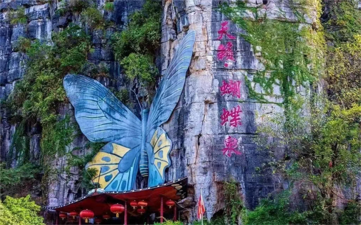 8:00游览【蝴蝶泉】(门票已含、游览时间约为2小时)景区内奇峰叠彩、洞穴生辉、瀑布飞溅、泉水潺潺、山道盘旋、曲径通幽,登上南天门的观景台,犹如从天上看人间,十里画廊美景尽收眼底。泉边嬉水,高山攀岩,可以毫不夸张的说:“不游天籁•蝴蝶泉,不知十里画廊美景”。