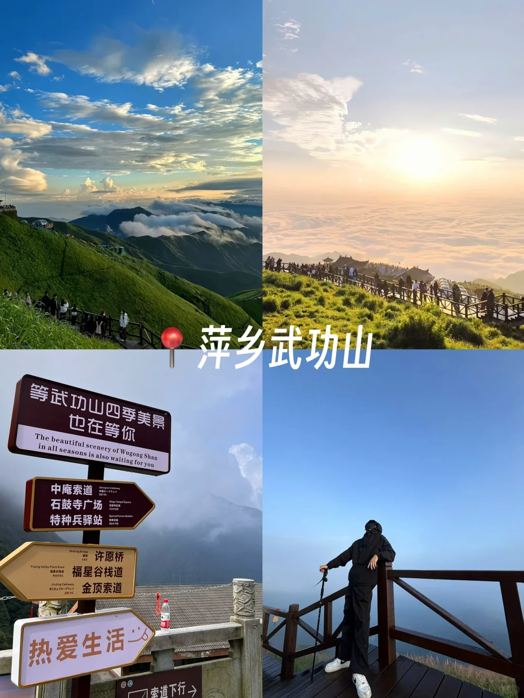 白鹤峰金顶:武功山最高点,立有碑刻,是观日出、云海、星空的最佳位置。立于此处可俯瞰十万亩草甸起伏如浪。