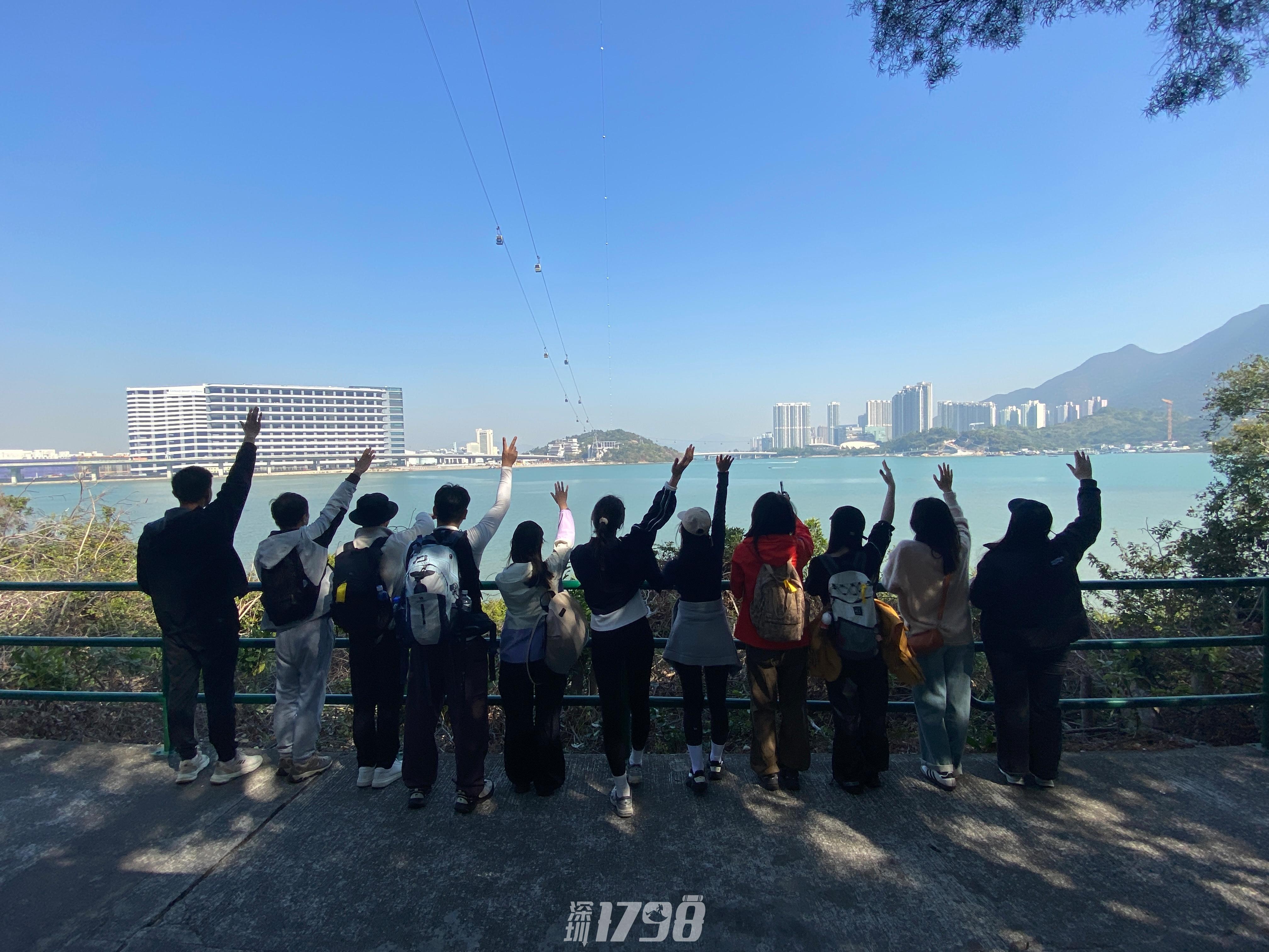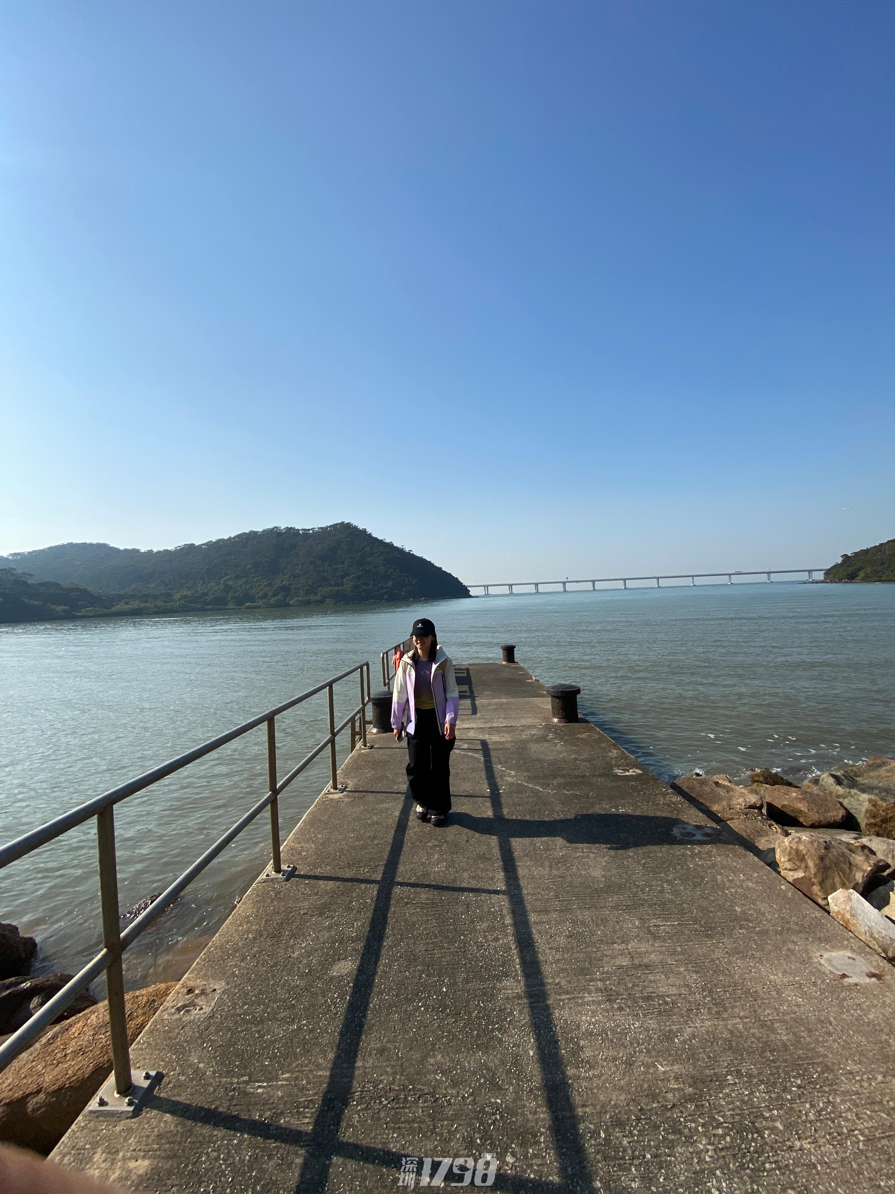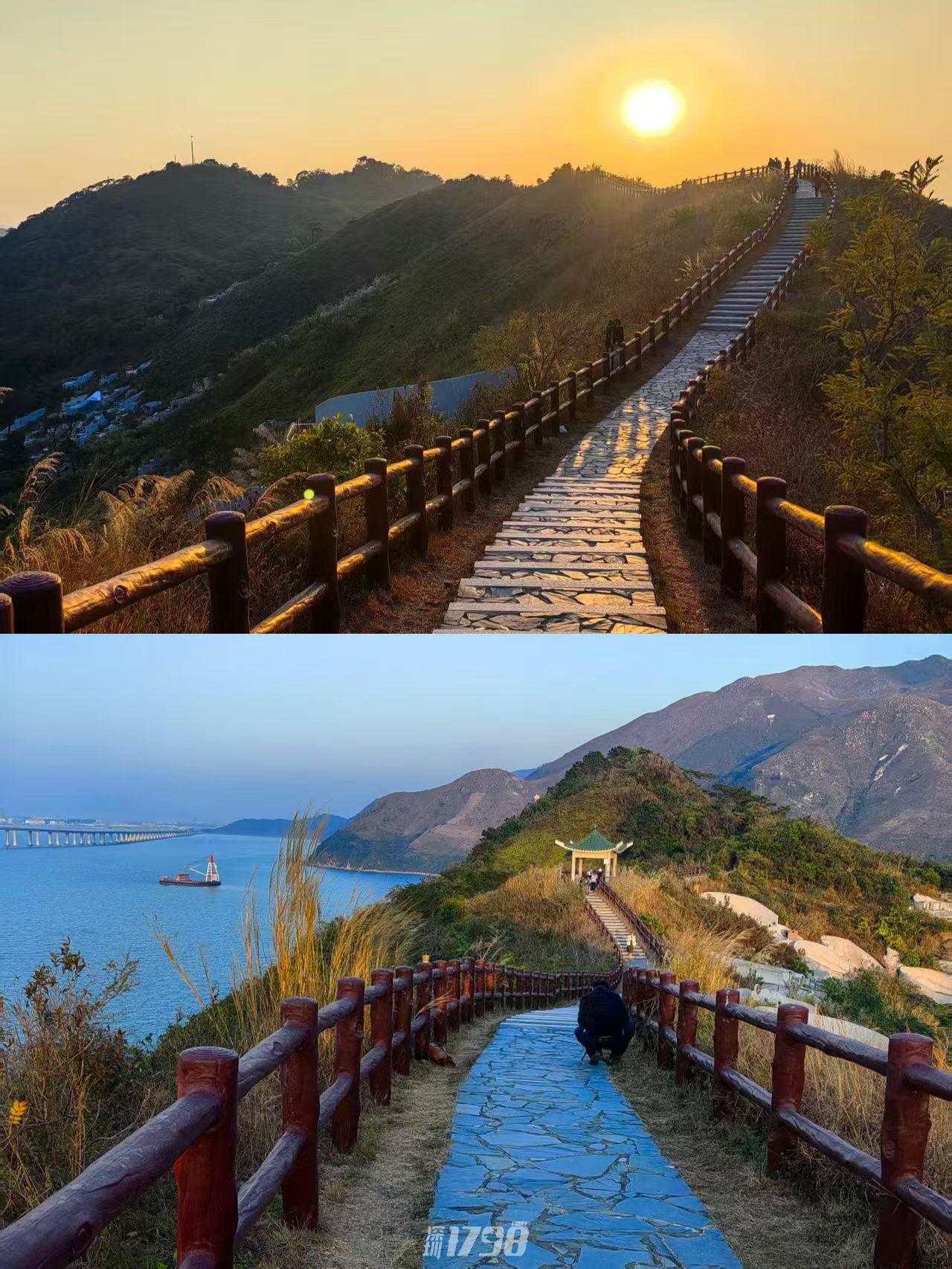 15:30 登顶虎山,徒步栈道,观赏180°无死角的海景及港珠澳大桥,偶遇白海豚,这里拍照特别出大片