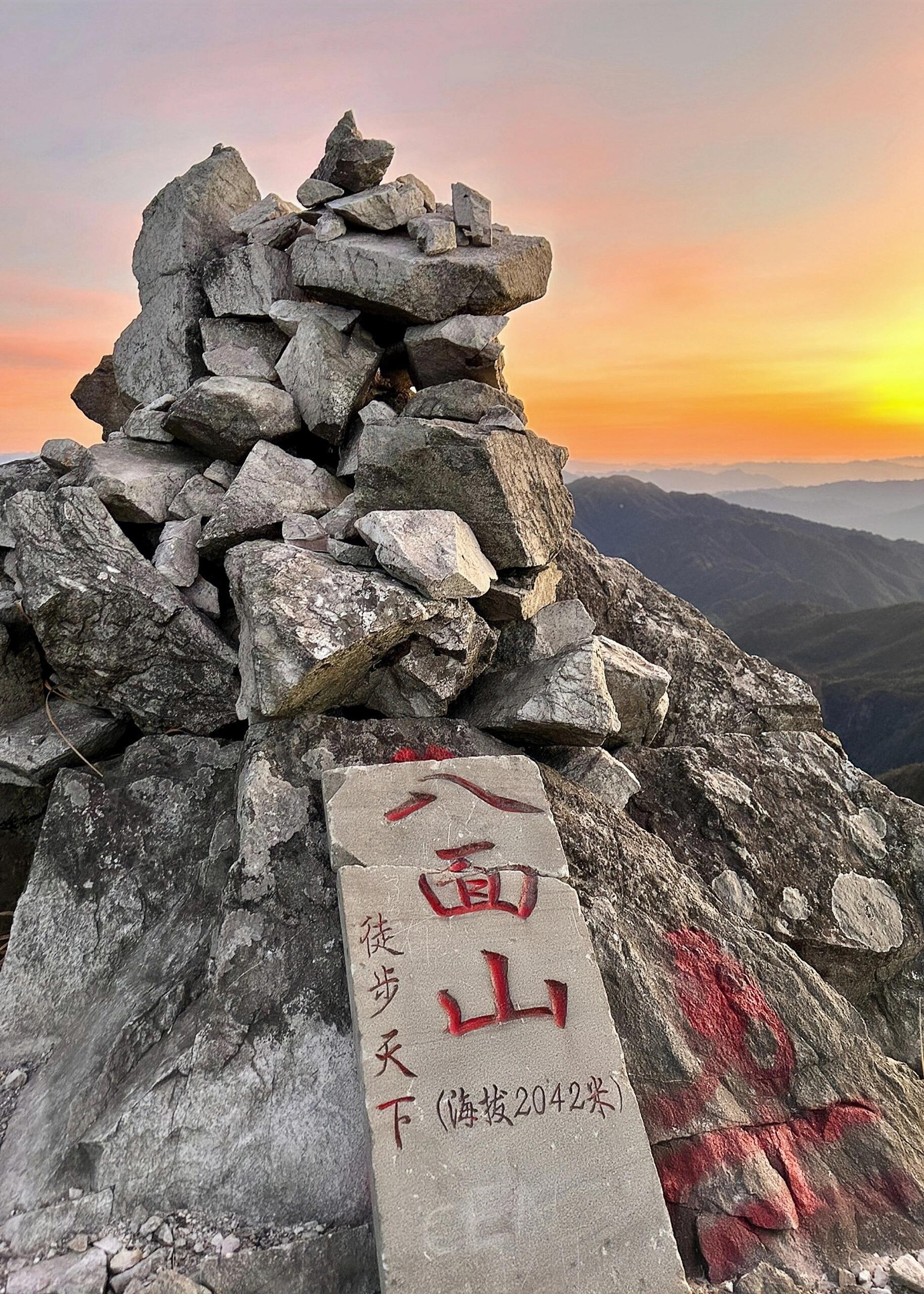 06:30 到达八面山顶,坐等日出 云海